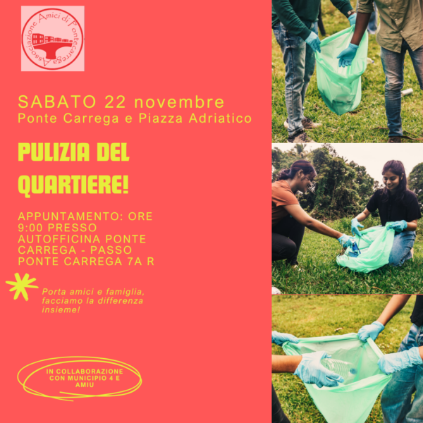 Sabato 22 novembre pulizia del quartiere! Vi aspettiamo